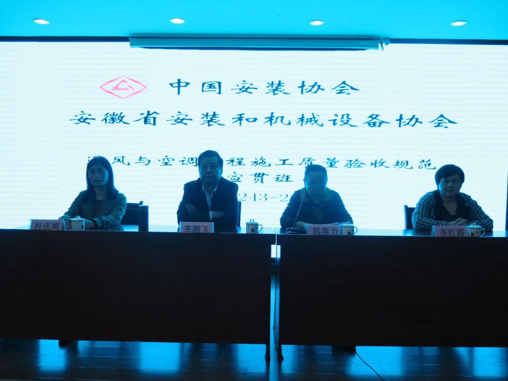 2017年11月10日,由中国安装协会主办,安徽省安装和机械设备协会承办的《通风与空调工程施工质量验收规范》(GB50243-2016)宣贯班在安徽合肥成功举办。这是中国安装协会与安徽省安装和机械设备协会首次合作开展培训。来自北京、山西、江苏和我会会员单位负责人、技术负责人、工程师等相关人员200多人参会。安徽省安装和机械设备协会副会长李鹏飞作了开班动员,中国安装协会培训班主任韩燕力提出基本要求。