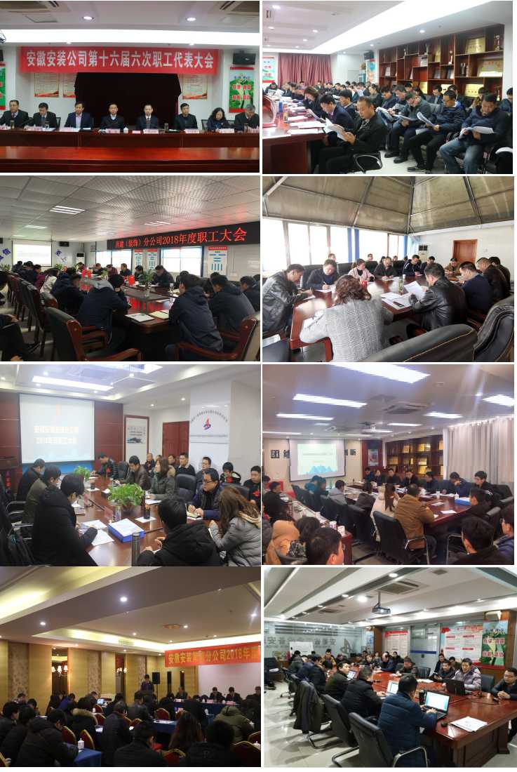 1月29日--3月17日,安徽安装召开十六届六次职代会和各分公司职工大会,宣贯集团公司一届六次职代会精神,并结合安徽安装实际,重点围绕“一主两翼”发展战略,多措并举,力保全年目标任务的实现。