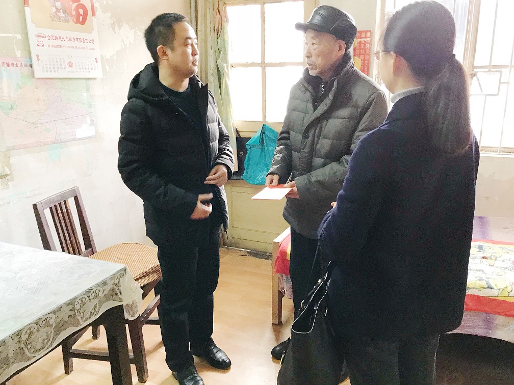 春节将至,2月1日上午,集团股份公司副总经理黄代在证券事务部部长许丽和安徽安装公司党委书记、董事长胡六中的陪同下带着浓浓的关爱之情,走访慰问省劳动模范、安徽安装公司退休职工陈怀和,向他致以节日的问候。
