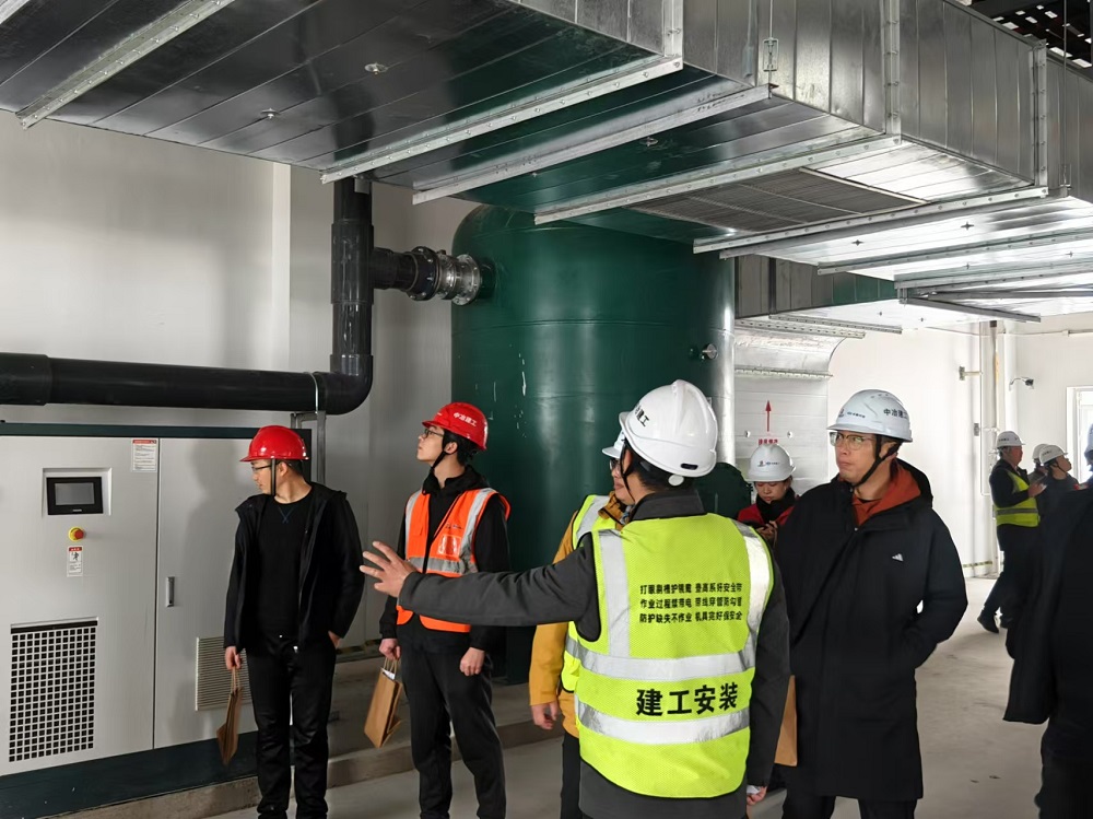 本项目建工安装合肥分公司施工内容涉及P01厂房洁净工程和机电安装工程(洁净区域装饰装修、工艺设备、工艺管线、给排水、电气、通风空调等)。在观摩过程中,重庆仁宝项目经理刘全沧为观摩人员详细讲解了PO1厂房冷冻水机房、动力机房的构成及使用功能。观摩人员驻足观看、交流探讨,并对项目建设过程中质量管理重难点进行答疑解惑,现场气氛热烈。
