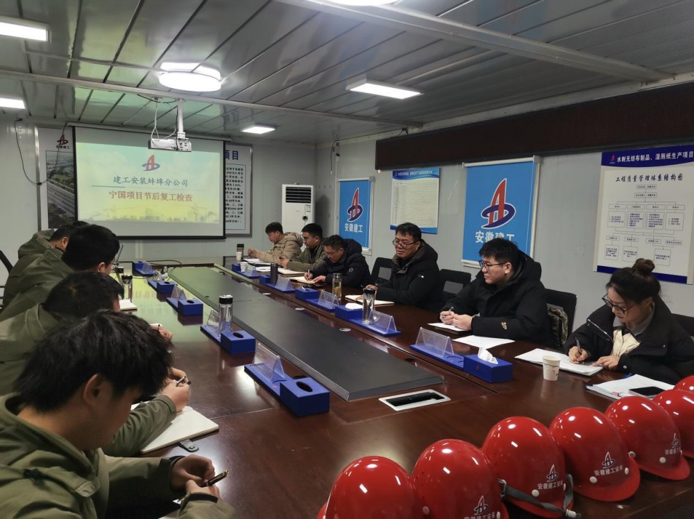 2025年2月11日,分公司党支部书记、经理赵铭亮一行赴宁国水刺无纺布制品、湿厕纸生产项目开展春节后复工检查,并召开现场工作会议,对项目工期进度、质量管控、成本管控、人才培养等方面进行安排部署,为项目新一年建设开好局、起好步指明方向。分公司副经理张斌及各部门负责人陪同检查。