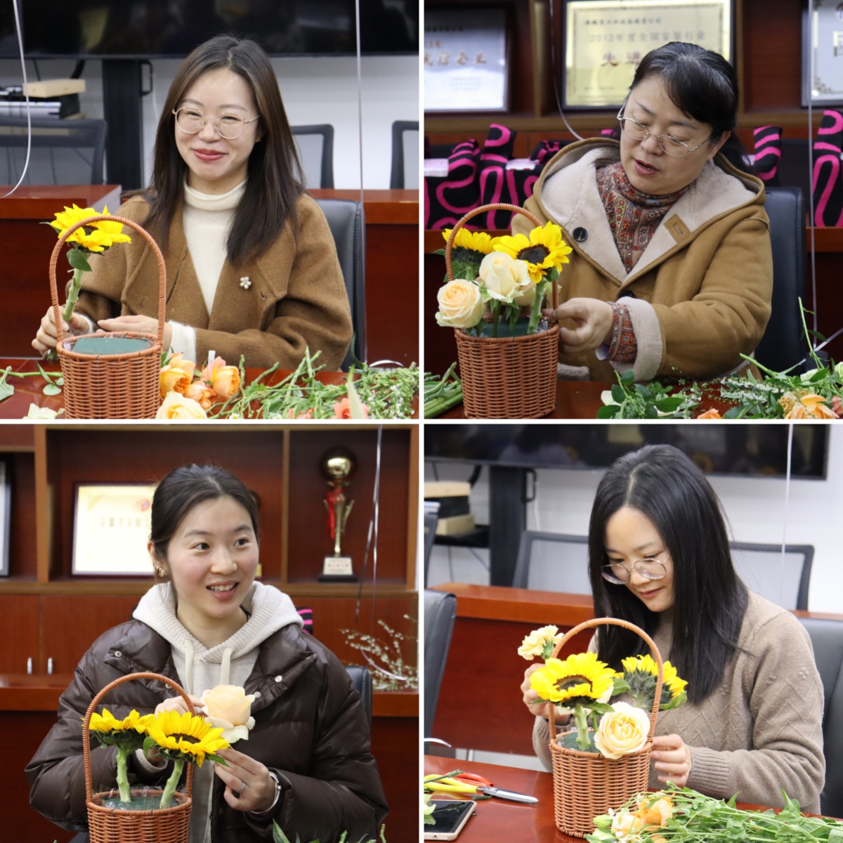 活动现场花香四溢,充满着春天的气息,专业花艺师从花材特性、色彩美学到造型构思向大家进行了系统讲解并进行了现场演示。女职工们兴致盎然、跃跃欲试,充分发挥自己的想象力,以高涨的热情投入到插花创作中,纷纷化身“春日设计师”,将玫瑰的热烈、百合的芬芳、向日葵的阳光巧妙组合,在修剪与构思中展现女性的细腻匠心。大家一边插花创作,一边互相交流着自己的想法和创意,现场充满了欢声笑语、其乐融融。