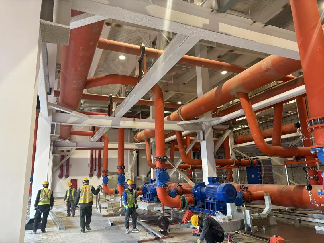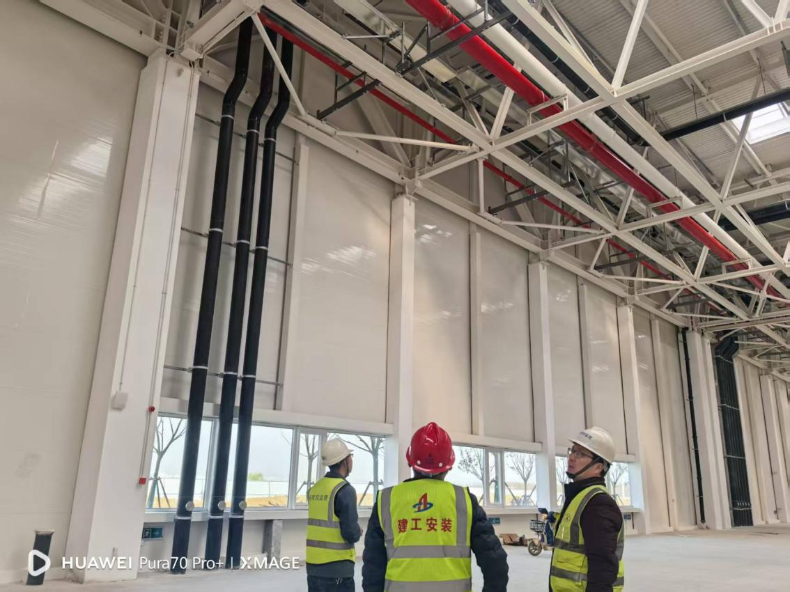 自一季度以来,项目部以“2025开局即决战”的昂扬斗志,迅速掀起“大干快上”施工热潮。对各车间、各系统剩余工程量展开全面梳理统计,同时针对剩余工程量坚持每日召开专题会,以倒排计划为“发令枪”,对照时间节点要求各班组加班加点、不折不扣完成。截至发稿,车间一大面积施工基本完成,形象进度完成约96%;车间二形象进度完成约90%;车间四形象进度完成约92%;站房一各设备管道基本安装完成,正在调试中,形象进度完成约90%。目前,各车间工艺生产均已进场,燃气锅炉点火成功、空压站完成试运行、工艺24h冷冻水、恒温恒湿空调均已投入使用;各车间工艺区送电已到位、供水完成。