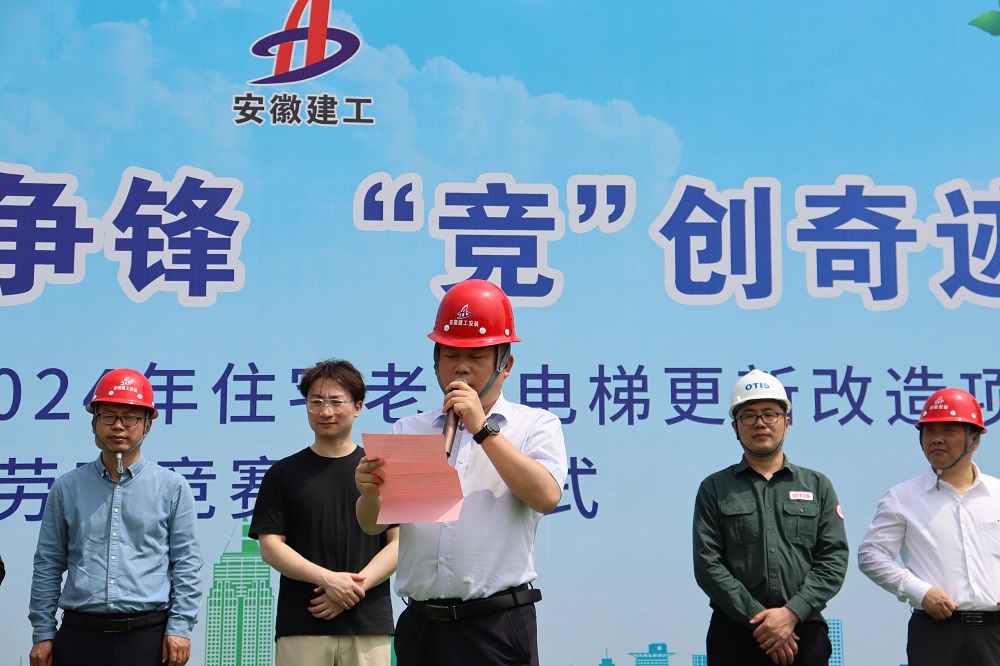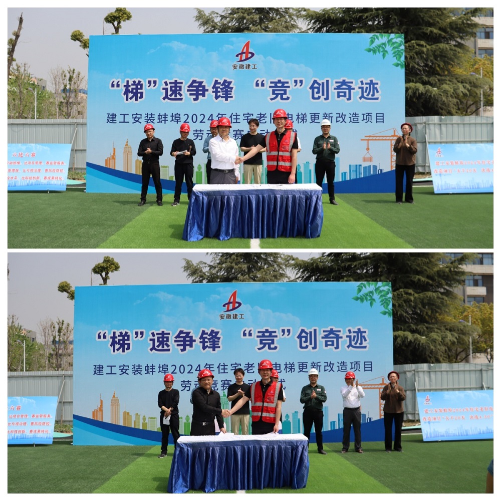 为贯彻集团和公司两级职代会精神,落实公司劳动竞赛活动相关工作要求,加快工程建设进度,不断提高项目管理和建设水平,4月10日,建工安装电梯分公司蚌埠2024年住宅老旧电梯更新改造项目举行了以“梯”速争锋 “竞”创奇迹为主题的劳动竞赛启动仪式,正式吹响了“大干20天,决战4.30”劳动竞赛的奋进号角。蚌埠市城市投资控股有限公司代表、分公司班子成员、项目部管理人员、各参建单位代表及作业人员共130余人参加活动。
