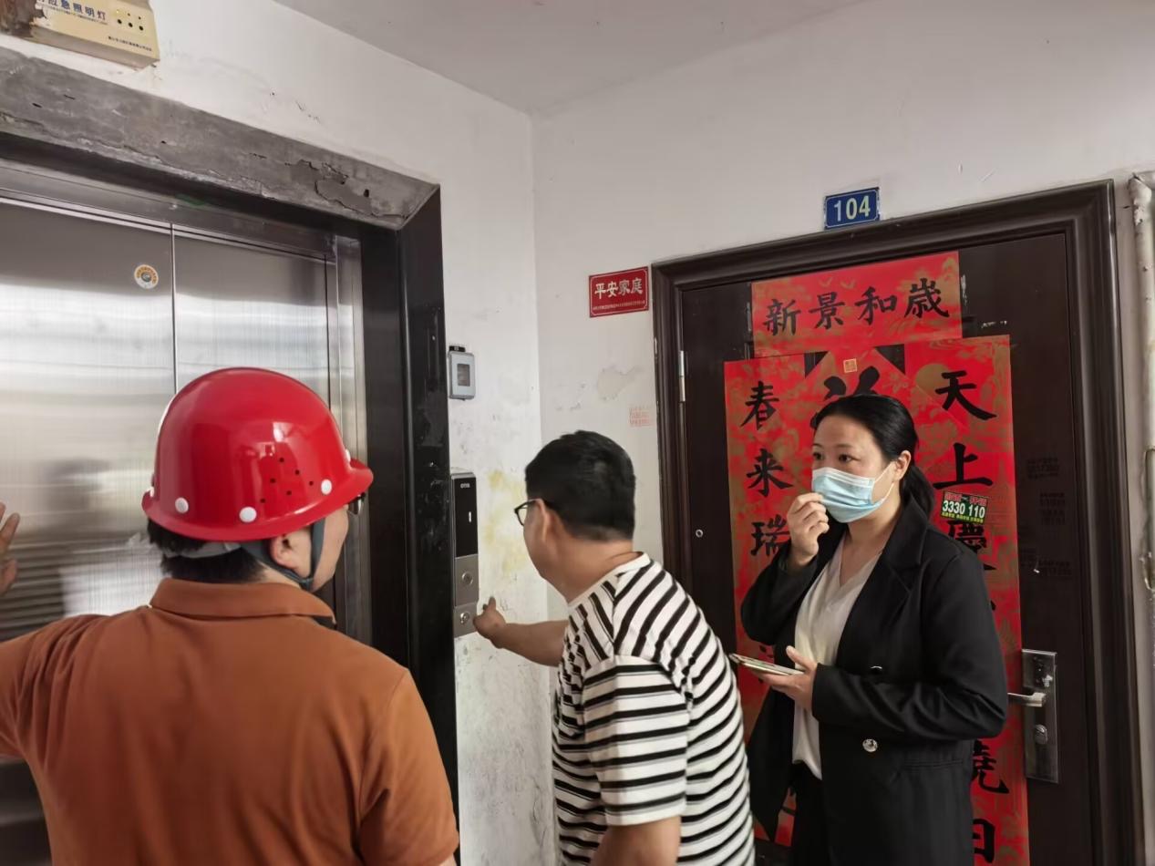 蚌埠2024年住宅老旧电梯更新改造项目,项目人员正在对配套安装质量进行现场查验
