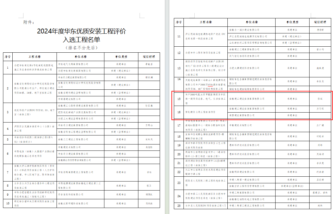 近日,2024年度华东优质安装工程评价入选工程名单公布。建工安装蚌埠分公司承建的辉隆年产2000吨氯虫苯甲酰胺原药及中间体一期项目设备、电气、仪表安装工程成功入选。