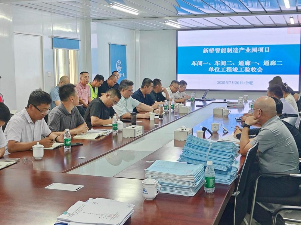 7月30日下午,由监理、设计、施工、建设、勘察等多方责任主体联合组成的验收组,对建工安装新桥智能制造产业园一阶段一标车间一、车间二、通廊一、通廊二等单位工程进行竣工验收。