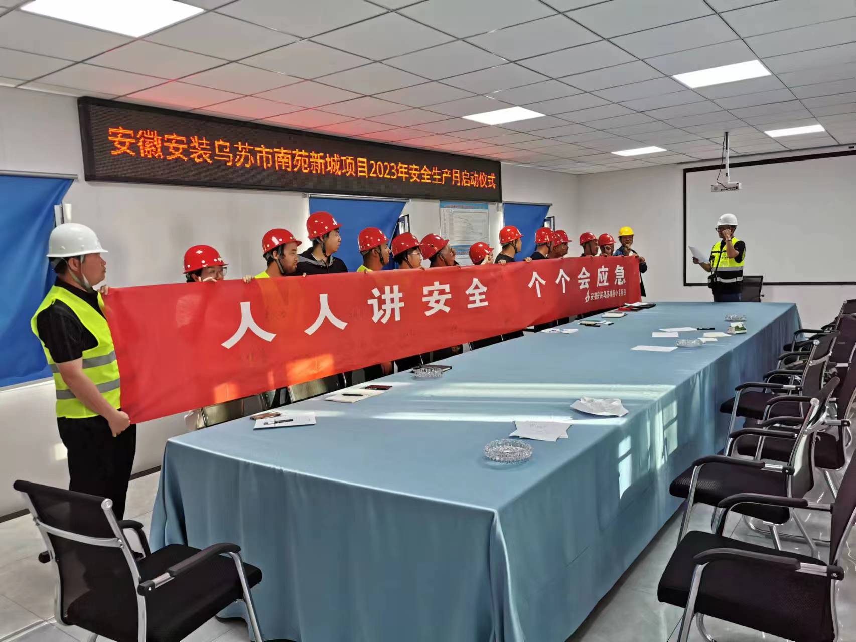 6月1日,建工安装新疆乌苏分公司在乌苏市南苑新城小区住宅楼建设项目举行安全生产月活动启动仪式,分公司全体员工及项目部各班组管理人员参与此次启动仪式。