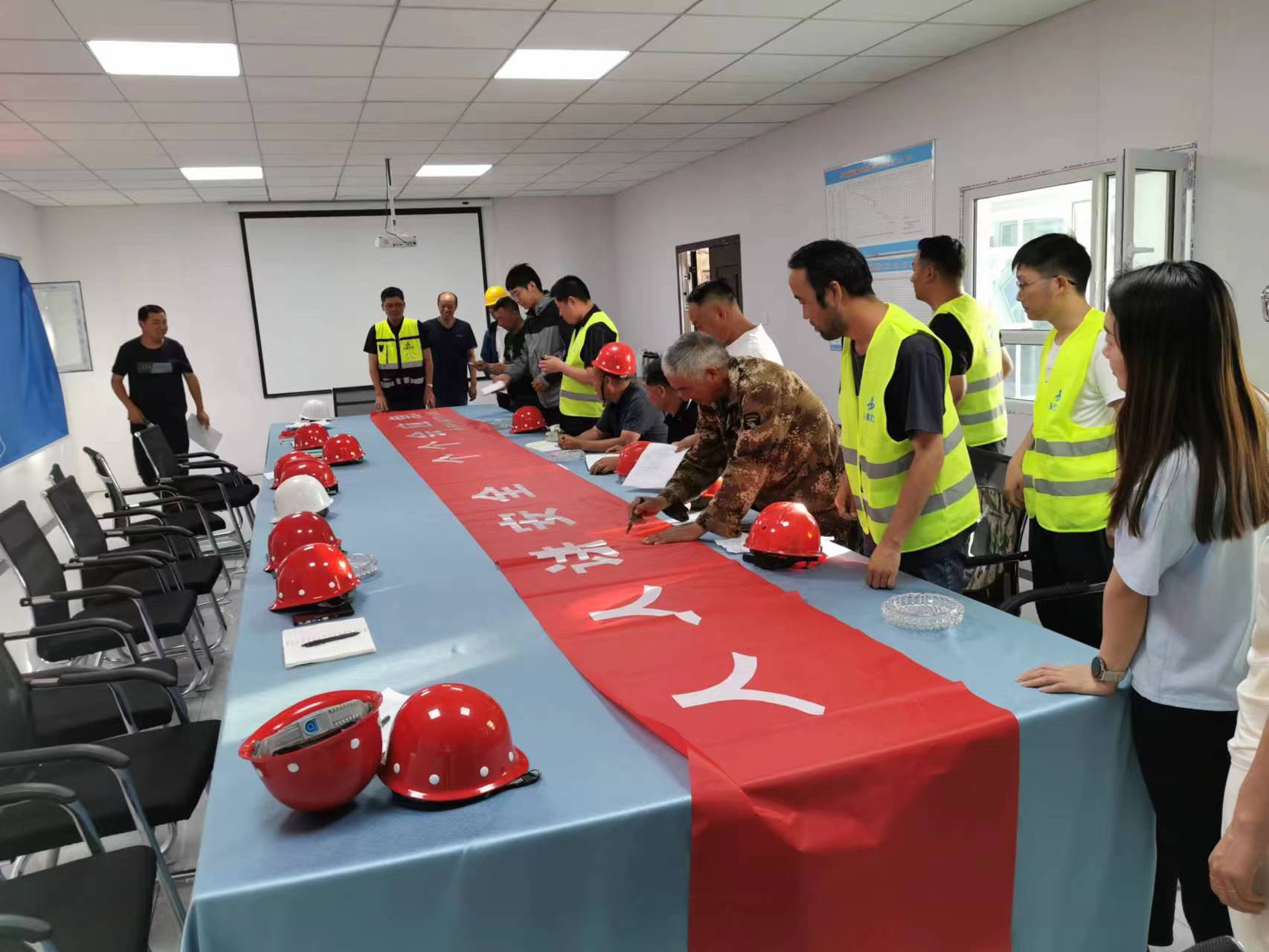 启动仪式上,项目部安全员向大家宣读此次安全月活动的活动方案,播放安全教育、警示类视频,并着重讲解施工现场及生活区一些常见而易忽视的安全隐患及防范措施,提升管理人员在面对风险时的安全意识,并指出确保安全是各类生产活动的首要任务,全员要树立安全第一、生命至上的理念。分公司所属项目部管理人员要严格落实安全生产责任制,树牢安全红线意识,通过宣传教育、实战演练、隐患排查等方式,让分公司全体员工和所属项目所有参建人员更积极主动参与到各项安全生产活动中来,清楚各自在安全体系管理中的责任及意义,努力营造一个“人人要安全、人人管安全”的良好安全管理氛围,提升分公司安全管理水平。在仪式的最后,所有人员在安全员的带领下庄严宣誓,并在印有“人人讲安全,个个会应急”的横幅上进行安全承诺签名。