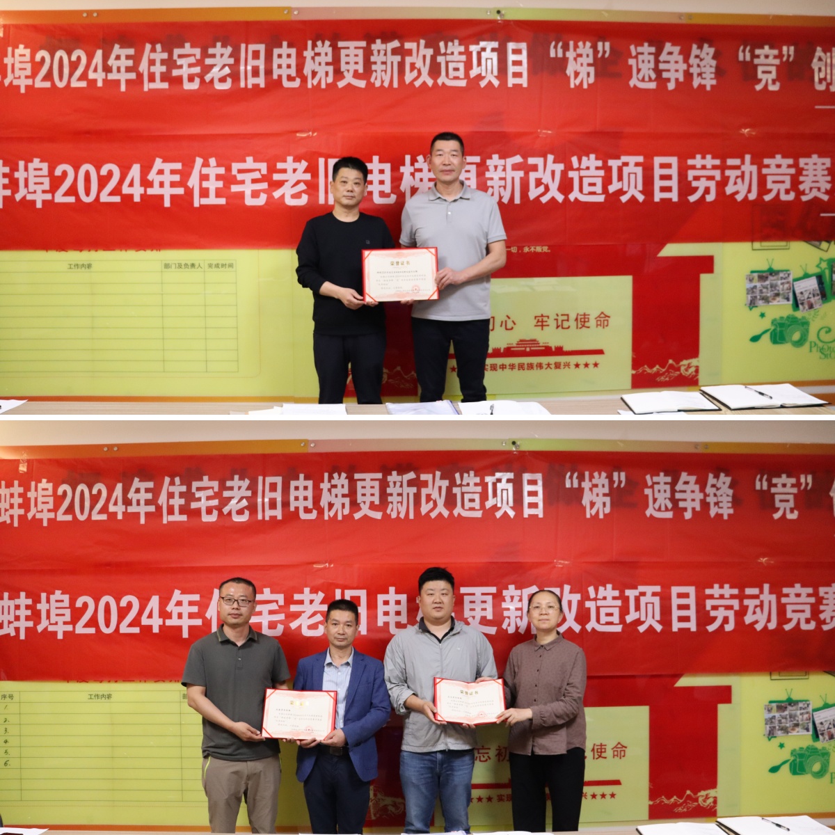 自4月10日劳动竞赛开展以来,项目部全体参建人员统一思想、团结协作、攻坚克难,积极营造“比、学、赶、帮、超”的良好氛围。项目部主动担当,逐户走访收集诉求,与居民加强沟通协调,耐心细致讲解施工流程与安全保障措施,用真诚沟通赢得居民理解与支持。为保障施工进度高效推进,项目部以攻坚姿态与时间赛跑,与困难斗争,采用“日调度、夜复盘” 工作推进机制,白天扎根施工现场,抢抓每分每秒;夜晚及时组织技术复盘研讨,针对交叉作业、设备运输等难题大家集思广益、群策群力,动态调整施工策略。面对重重挑战,全体人员争分夺秒,迎难而上,你追我赶,即使大家连续奋战多日身心俱疲,仍然士气高涨,任劳任怨。凭借这股拼劲干劲,项目部20天累计完成产值3700余万元,完成285台电梯安装,比原定竞赛目标超额完成37台,实现经济效益30余万元。此次劳动竞赛实现了项目安全、质量、进度等目标任务的共赢,取得了圆满成功。