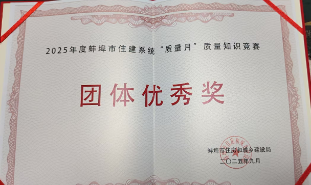 近日,建工安装机电公司代表队在蚌埠市2025年度住建系统“质量月”知识竞赛中,凭借扎实的专业知识与默契的团队协作,一路挺进,最终荣获团体优秀奖,用实力诠释了“质量为本、精益求精”的职业坚守。